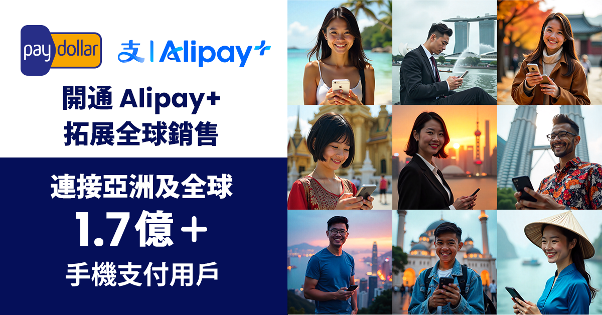 Alipay+ 是一個全面的跨境行動支付及行銷解決方案,已正式登陸 PayDollar 支援香港及新加坡商戶,立即開始連接遍佈亞洲各地區超過17億喜愛使用手機消費帳戶。